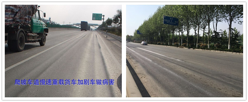 由于重载货运导致国省道的交叉口车辙严重